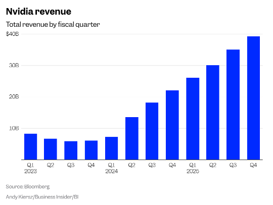 Another key factor muting the tariff effect is that the stock market has seen particularly strong earnings growth through all the rhetoric. Take NVIDIA as an example. With a price-to-earnings ratio above 60, it’s clearly an “expensive” stock, but this is one of the more remarkable growth stories we’ve ever seen (see chart below from Business Insider showing historical fiscal year growth). Other “mega caps” are also seeing solid 2025 growth. These mega cap tech growth stories are helping to overshadow tariff news.